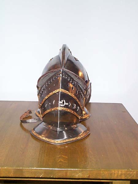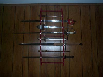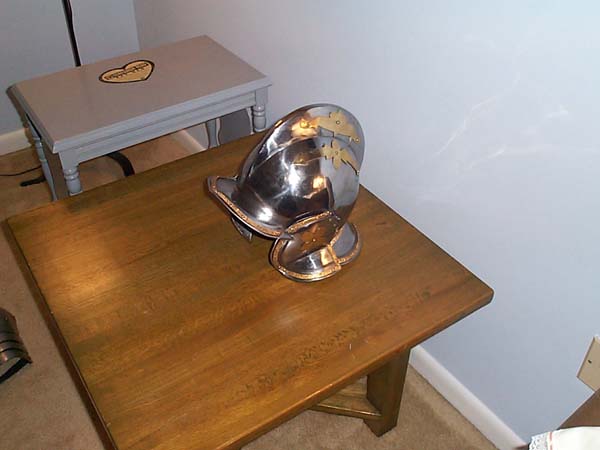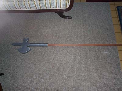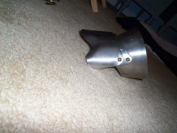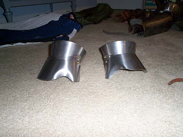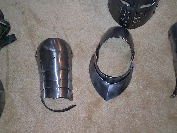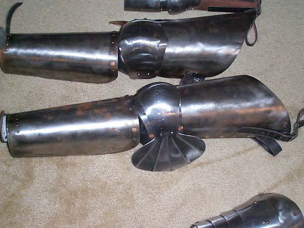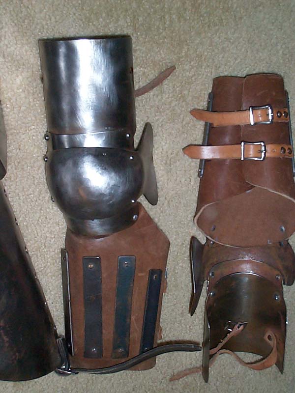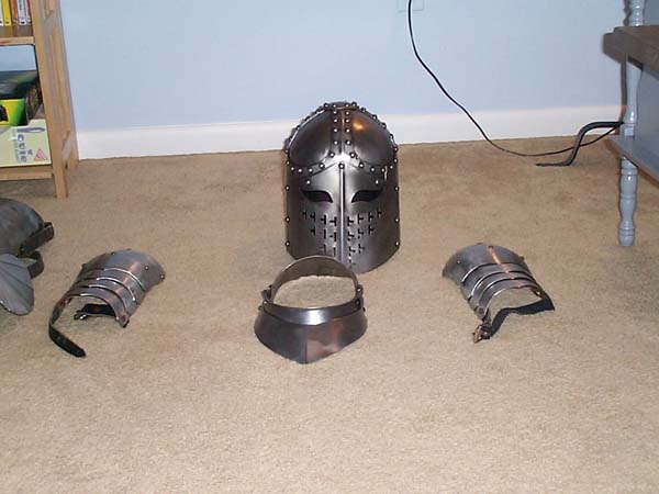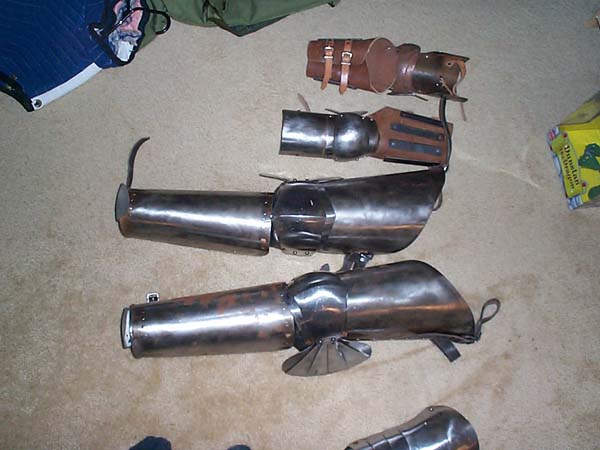 Here are several pictures of my armour which I need to finish working on before I am ready to go off and do battle. Most of this armour is for Heavy Combat using rattan cudgels, but I am also have some armour for Light Combat using shinia swords and padded polearms. Helmet, Gorget, and Spaulders. Helmet, Gorget, and Spaulders. 2 Coat of Plates. (And yes those are street signs) My Armour. (Minus helmet and gauntlets) Light Armoured Combat Polearms. Some Pictures I took at the Leeds Armoury in England |