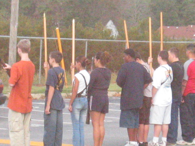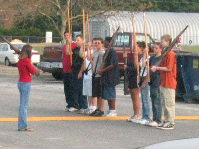 Fluharty demonstrating a proper left-shoulder arms.