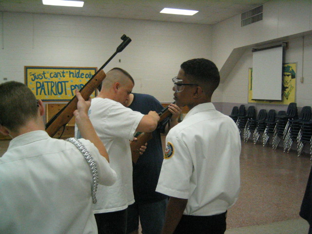 Rifle Team CO House and assistant Cooke, checking a rifle