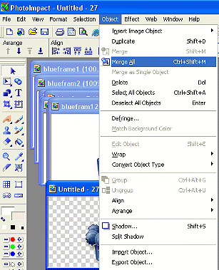 12. Now open up ULead gif animator [Go to "Switch" in upper right corner], select Gif animation wizard & open the 13 frames (add image1.ufo from hard drive. click on add button adding image 2 etc.)...frame speed 14.