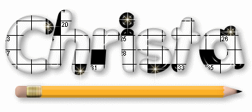 For Photo Shop I have developed styles for the crossword fill... Basically it is real easy... after loading styles, open up a new canvas 400 X 400 transparency. Choose Font. Type Name. Select Crossword Style. Next open the Yellow Pencil & place underneath. Go to edit free transform and scale to size. Merge. Crop to size wanted. Save as a .png file. Duplicate that frame twice & add sparkles. Merge & Resave each one as a .png file. For the animation I use an outside animation program as I am still in process of learning how to use the Photo Shop animation. The Photo Shop Styles are found here Crossword Style