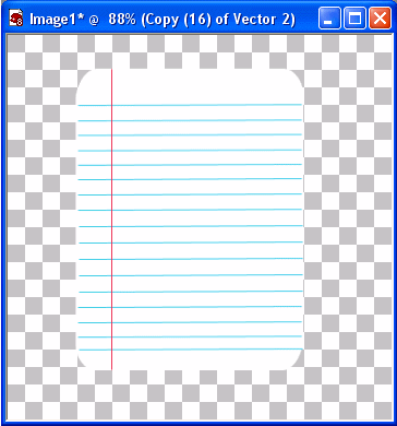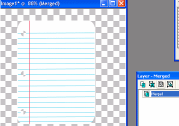 4. Copy this layer & move in intervals of spacing to represent the lines on a piece of looseleaf all the way down the white rectangle. Spacing about the size of a square width from the transparent background. (mine has 18 horizontal lines)