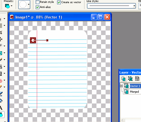 5. Add a vector layer. Still using pen tool, Change color to red ##EB1F45 to do the vertical line on the side of the paper.