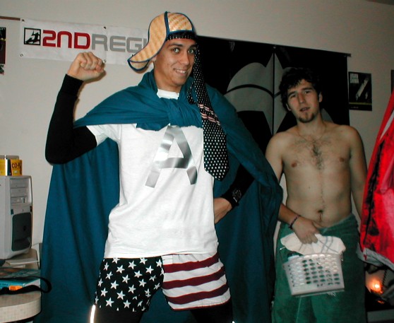 Also, many have tried to duplicate this America-Man, using spandex, flag boxers, a blue bedsheet, wool socks, duct tape, a crazy hat, and a flag tie on their head. Sadly, they are poor replicas.