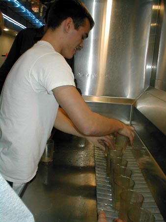 Levi stacking another cup, while Mike stands in awe of our work.