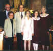 Wedding of Norma Passauer and Waldo Kinter. L-R Dick, friend of Waldo and Best Man; Marjorie J. Passauer; Waldo R. Kinter; Norma Passauer; Emily Hine; Ada Lynne Noel. Feb. 21, 1998.