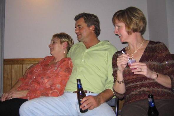| Frank, Lynne and Bill assembled in the Circle of the Jell-O Shooters. Yes, it's getting pretty late here... |