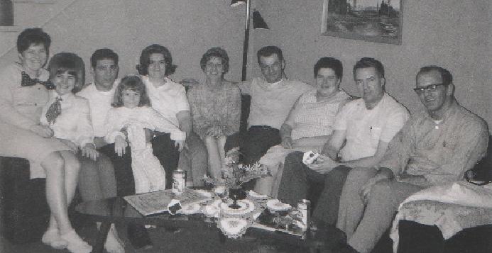 In the picture to the left, standing in the back row, from right to left is: Virginia Boring Ingram (my wife's Mother), my wifes' Aunts Ethel Boring Vitous and Sharon Orth. In the front row kneeling, from left to right: Frank Orth (my wife's Step Grandfather), my wife's Uncles Richard Boring, Duane Boring, and Lawrence Orth. They were gathered together in Presque Isle, WI for the funeral of my wife's maternal Grandmother Carrie Childers Boring Orth in November of 1967. |