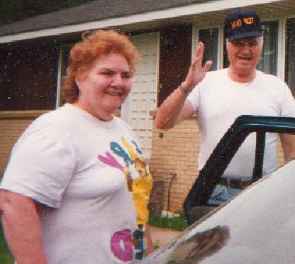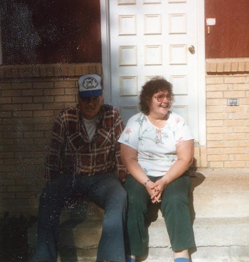 | In the picture to the right, can be seen Virgil and Virginia Ingram, sitting on their front stoop, outside their house at the Double "V" Ranch, in Hollister, Wisconsin. Many a happy moment was shared here at the "ranch", where Virgil raised his bear hunting hounds (Plotts, Currs, Redbones, English Blue and Red Ticks, and Black & Tans) and Virginia spent so many hours yelling at those same dogs to "be quiet!". The two of them were a perfect match, Virgil was the quiet, evenhanded steady strain...while Virginia was the fervently religious, hot tempered and furiously loving wife. Together they were the epitome of a strong marriage and provided a loving example for all to follow. I took this picture in 1987. | ![]() |