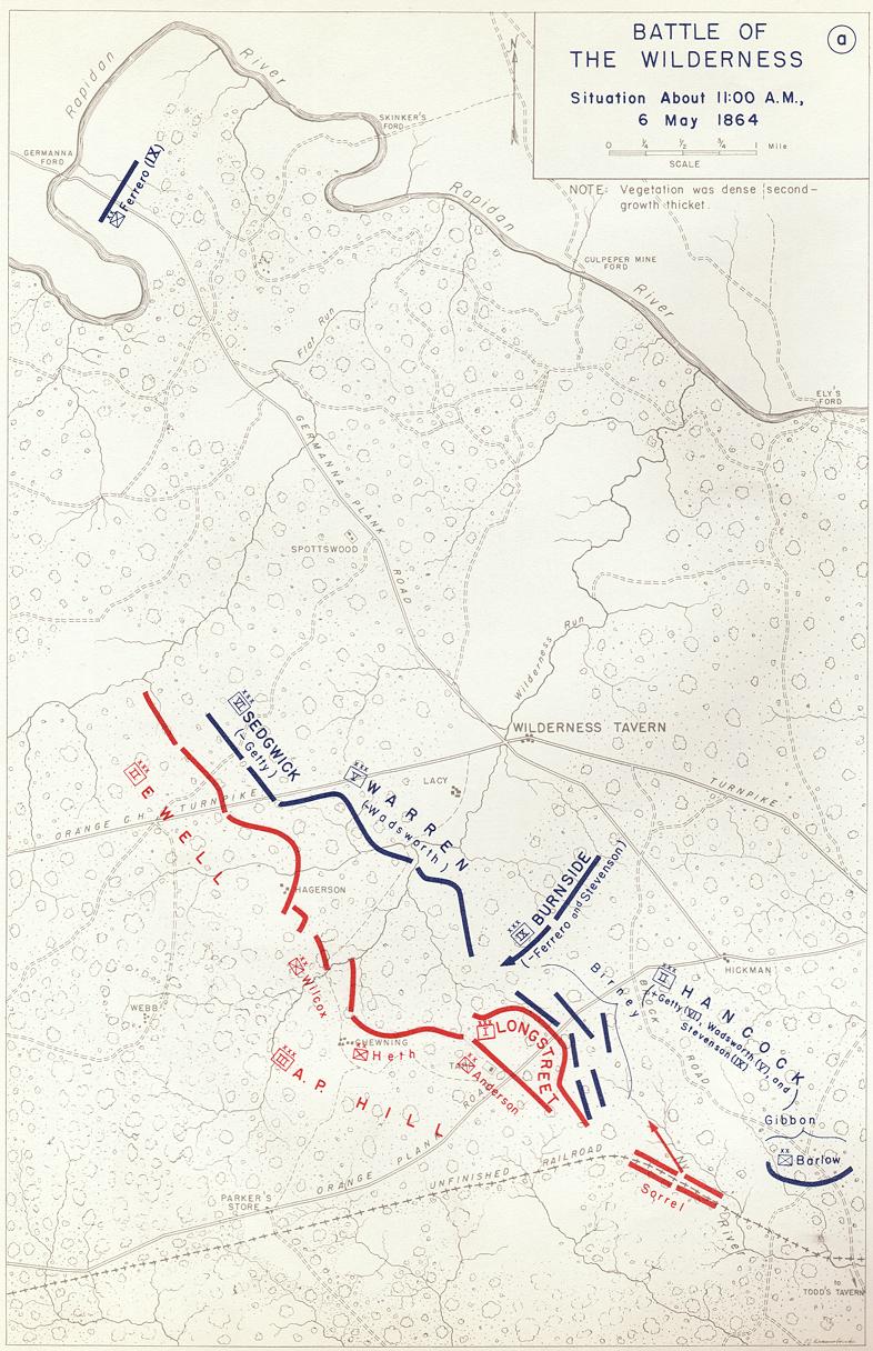 Lieut. Col. W. H. TAYLOR, A. A. G. COLONEL: On April 11, 1864, I received orders at Bristol from the Adjutant and Inspector-General to report with the original portion of the First Corps (Kershaw's and Field's divisions and Alexander's battalion of artillery) to General R. E. Lee, commanding Army of Northern Virginia. On the 14th I reached Charlottesville, and awaited there the arrival of my troops, which were somewhat delayed by want of transportation on railroad. As the troops arrived they were encamped at points between Charlottesville and Gordonsville. On the 22d, in obedience to orders received from the commanding general, I marched my command to Mechanicsville, and encamped in the near neighborhood thereof. On the 2d [May] Field's division was moved to the north of Gordonsville to meet an expected advance of a portion of the enemy by way of Liberty Mills. On the 4th was advised by the commanding general that the enemy appeared to be moving toward Stevensburg, and, as directed by him, started about 4 o'clock in the afternoon and marched to Brock's Bridge, on the border of Orange County, a distance of about 16 miles. Early on the morning of the 5th resumed my march on the [Orange plank] and Catharpin roads to Richards' Shop on Catharpin road. During the latter part of this day s march Rosser was skirmishing in my front with his brigade of cavalry. At 12.30 a.m. on the 6th started for Parker's Store, on the plank road, in obedience to orders received from the commanding general, who also informed me that Generals Hill and Ewell had been heavily engaged the previous day. Arriving at Parker s Store about dawn, I was directed to move my column down the plank road to relieve the divisions of Heth and Wilcox, which were in position in face of the enemy on the right and left of the plank road, at right angles with it and about 3 miles below Parker's Store. Kershaw's division was in the lead, arriving in rear of the line held by these two divisions, and when the head of my column had filed to the right, and had only time to deploy two regiments of Kershaw's old brigade, an advance was made by the whole line of the enemy, and the divisions of Heth and Wilcox broke and retreated in some confusion. With considerable difficulty, but with steadiness, opening their ranks to let the retreating divisions through, Kershaw formed his line on the right and Field on the left of the plank road. Having checked the advance of the enemy, I ordered a general advance by my line, which was made with spirit rarely surpassed, and before which the enemy was driven a considerable distance. The woods were dense and the undergrowth almost impossible to penetrate. This success was not purchased without the loss of many of the bravest officers and men of my corps. The circumstances under which they fought were most unfavorable. Thrown suddenly, while still moving by the flank, and when hardly more than the head of the column could face the enemy, into the presence of an advancing foe with their ranks broken each instant by bodies of our retreating men, they not only held their own, but formed their line, and in turn, charging the enemy, drove him back in confusion over half a mile to a line of temporary works, where they were re-enforced by reserves. About 10 o'clock Maj. Gen. M. L. Smith and the other officers sent out to examine the enemy's position, reported that the left of the enemy's line extended but a short distance beyond the plank road. Special directions were given to Lieutenant-Colonel Sorrel to conduct the brigades of Generals Mahone. G. T. Anderson, and Wofford beyond the enemy s left, and to attack him on his left and rear--I have since heard that the brigade of General Davis formed a part of this flanking force--the flank movement to be followed by a general advance, Anderson's brigade on the right and Wofford's on the left, Mallone being in the center. They moved by the flank till the unfinished railroad from Gordonsville to Fredericksburg was reached. Forming on this railroad facing to the north, they advanced in the direction of the plank road till they encountered the enemy in flank and rear, who was then engaging the brigades of Gregg, Benning, and Law in front. The movement was a complete surprise and a perfect success. It was executed with rare zeal and intelligence. The enemy made but a short stand, and fell back, in utter rout with heavy loss, to a position about three-quarters of a mile from my front attack. I immediately made arrangements to follow up the successes gained, and ordered an advance of all my troops for that purpose. While riding at the head of my column, moving by the flank down the plank road, I came opposite the brigades which had made the flank movement, and which were drawn up parallel to the plank road, and about 60 yards therefrom, when a portion of them fired a volley, which resulted in the death of General Jenkins, and the severe wounding of myself. I immediately notified the commanding general of my being obliged to quit the field, and the command devolved on Major-General Field. To the members of my staff I am under great obligations for their valuable services. They conducted themselves with their usual distinguished gallantry. Much of the success of the movement on the enemy's flank is due to the very skillful manner in which the move was conducted by Lieutenant-Colonel Sorrel. I have the honor to forward the accompanying reports of subordinate commanders of corps. I am, colonel, with great respect, your obedient servant, J. LONGSTREET, Lieutenant-General.