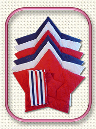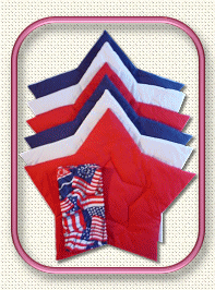 Placemats and Napkins: Mats measure no larger than 16 inches tall, 18 inches wide. 4 Mat set with Napkins are $22.50 Each Please contact us at: ![]() ![]() 4 Quilted Flag Mats (no napkins) $20.00 Each ![]() ![]() 4 Bandana Mats with Napkins $22.50 Each 4 Boating Mats with Napkins $22.50 Each ![]() ![]() 4 Apple Blossom Mats with Napkins $22.50 Each 4 Apple Mats with Napkins $22.50 Each ![]() 4 Watermelon Mats with Napkins $22.50 Each ![]() ![]() 4 Oval Jelly Bean Mats with Napkins $22.50 Each 4 Black Cat with Napkins $22.50 Each ![]() ![]() ![]() 4 Heart Mats with Napkins $22.50 Each 4 Victorian Heart Mats with Napkins $22.50 Each 4 Red Heart Mats with Napkins $22.50 Each ![]() 4 Oval Stencil Tree Mats with Napkins $22.50 Each ![]() 4 Christmas Bell Mats with Napkins $22.50 Each ![]() ![]() ![]() 4 Nascar Dale Jr. Mats with Napkins $22.50 Each 4 Nascar Dale Sr.Mats with Napkins $22.50 Each 4 Nascar Rusty Wallace Mats with Napkins $22.50 Each ![]() 4 Star Mats with Napkins $22.50 Each ![]() ![]() ![]() 6 Patriotic Star Mats with Napkins $32.50 Each 6 Patriotic Star Mats with Star Napkins $32.50 Each 6 Patriotic Stars & Stripes Mats with Napkins $32.50 Each