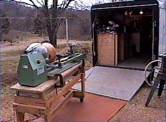 It took three trips across country with my trailer during the summer of 2001 but I am finally settled in and set up to enjoy life at an easy pace. I had bought my lathe in California but had never tried my hand at turning. So in August of 2001 I found Kevin Neely's site on the internet and decided to try my hand at turning bowls. I was really surprised at the outcome of my first attempt at bowl turning. Below is a picture of it which just happened to be the first bowl I sold.Click on an image to get an enlarged picture.