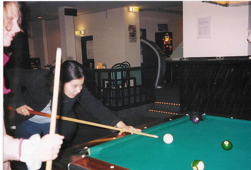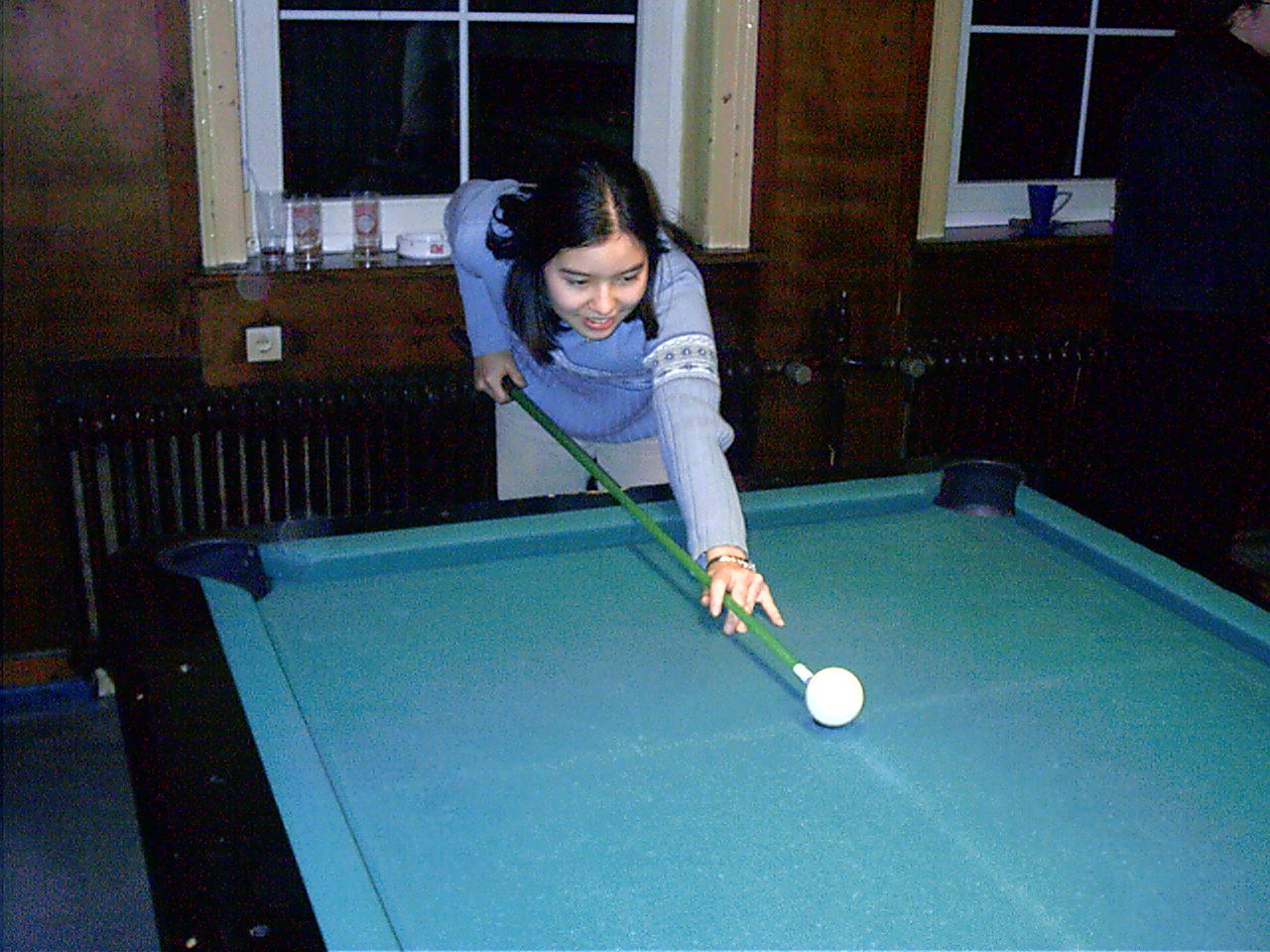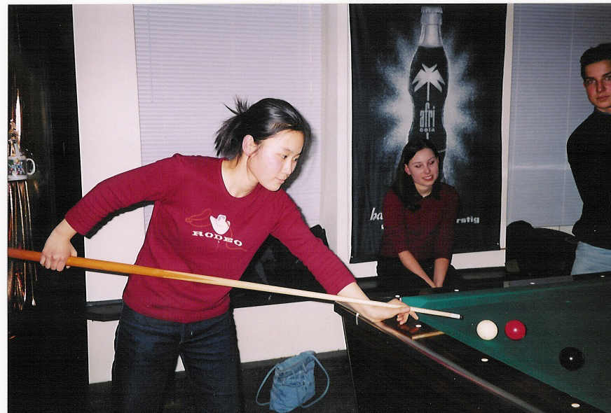Inkyung Lana playing pool Lana playing pool omG lillian does NOT knoe how to hold the cue...!! Maria Lisa Jenny (Lisa's host) me playing pool gosh look really weird here