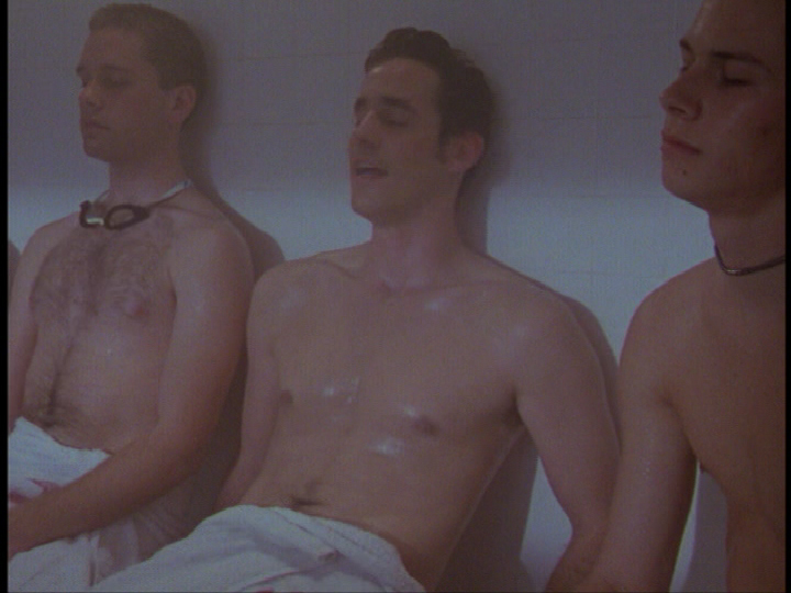 Xander is taking advantage of the steam room, working out all his little acheys, so he will be relaxed and ready to give Angel a great big congratulatory kiss!