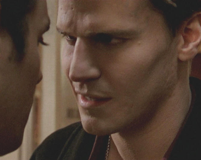 Angel's big hand cupped the side of his face and his thumb coaxed Xander's chin up until he was looking directly into Angel's eyes.