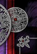 A few stone benches have been place beneath tall silver colored trees that offer shade with their large feathery fern like fingers and near the central fountain. A round channel outlines the fountain's base. From small grooves at the base, water trickles down into the channel. The water travels from here down through twelve radiating arms that form a spectacular sun star formation. Six of the ten radiating arms end in large round silver stone lined channels representing the Imajian Moons and three of the radiating arms end in gold lined channels in the form of an eight pointed star, representing the three Imajian Solarian Stars. Carefully planted flower beds are located near the Western and Eastern Walls. As your gaze is drawn there, you spot the towering silhouette of towers.