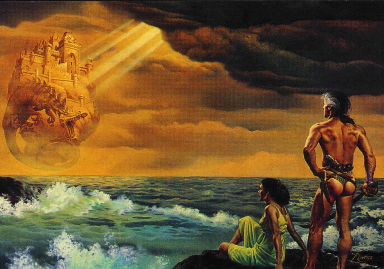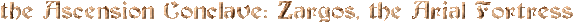 Suddenly the sun is blotted by night own hands. The heavens become devoid of all light and your mind races in panic thinking that it m'haps some gigantic Wyrm or the Roc of Legend is soaring above. Braving to peer heavenward, you discover that it's a flying citadel. It simply floats, looming in a stationary position. It seems to have been ripped from its place on the ground. The citadel rests on an isle of stone. Below the citadel's base is a never ending thunder storm that does not affect those below.