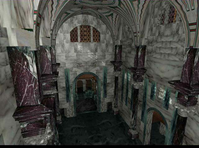 As one enters, one will pass through a long majestic corrior that leads to the great archway. |