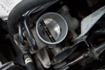 The Throttle Body on the left is the old one. It is only 49mm. You can see how the top of the TB narrows as well. The TB on the right is the new one; it came off an automatic Neon, and is 52mm. It is straight bored all the way through.