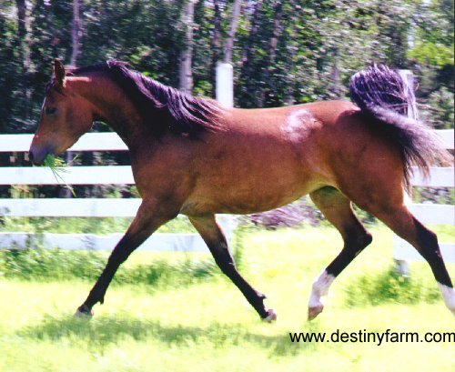 Sitten se eneginen puoli tammasta ;) Joskus tuntuu, että Nella todella säästää kaiken energiansa ratsastushetkiä varten. Nella ei todellakaan ole mikään helppo ratsastettava, sillä tamma on usein menossa pää viidentenä jalkana joka ilmansuuntaan, samanaikaisesti kaikkialle ;) Nella osaa kyllä paljon ja tammalla olisi mahdollisuuksia pitkälle niin koulussa kuin esteilläkin, mutta tamman mahdottomat menohalut ja kärsimättömyys tekee usein uusien asioiden opettelusta ja vanhojen asioiden kertaamisesta/harjoittelemista vähän turhankin hankalaa. Nellan kanssa täytyy vain osata olla rauhassa ja käyttää aikaa, pienestä tamman kanssa ei saa hermostua, sillä se ei auta yhtään mitään. Rauhallinen Nellan kanssa siis tulee olla, ainoastaan silloin tamman saa kulkemaan hyvin. Purettuaan turhat menohalut pois alkutunnista, Nellakin jaksaa jo keskittyä ja osaa kyllä olla todella hienokin niin halutessaan :) Joten kyllä siis niitäkin päiviä on, kun Nellan näkee suorittamassa koululiikkeitä rauhallisessa tahdissa kaikki neljä jalkaa maan pinnalla ;) Nellalla on arabeille tyypilliset lennokkaat ja sähäkät liikkeet. Emältänsä Nella on perinyt ilmiömäiset hyppylahjat ja ketteryyden, tamma todella tuntuu kääntyvän ihan mistä vaan. Erikoistesteitäkään tamma ei pahemmin katsele ja on kyllä hyppykaverina erittäin mukava, vaikka vauhtia on useimmiten vähän turhankin paljon. Hieno tamma Nella siis kertakaikkiaan on, mahdollisuuksia on vaikka mihin! Tulevaisuudessa Nellan kanssa tullaan kisaamaan aktiivisesti sekä koulua että esteitä, toivottavasti hyvällä menestyksellä :)