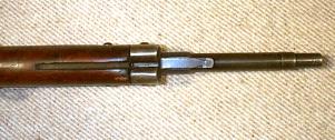 Close-up of the Model 38 action, note the mannlicher type magazine.