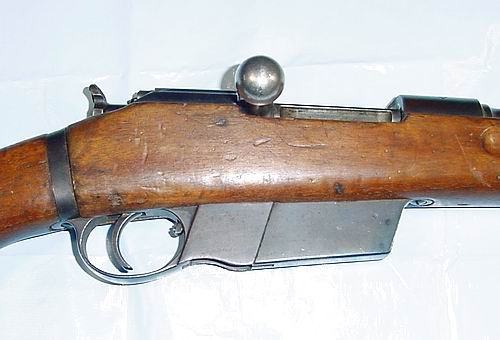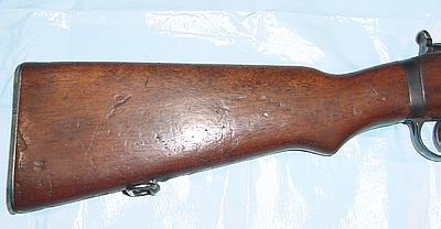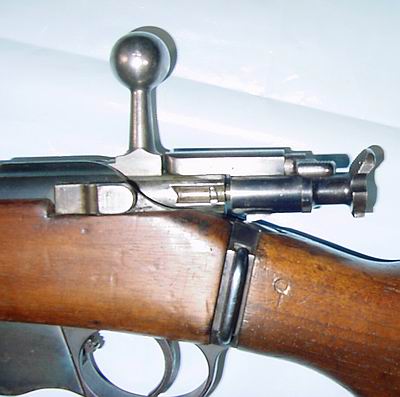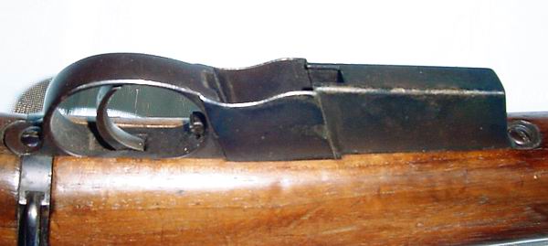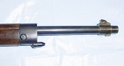 Close-up of the noseguard and front sight (the hood is missing) of the Model 1935 Shorth Rifle.