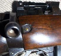 Close-up of the re-enforcing screw that was added on all Indian reconditioned Enfield rifles.