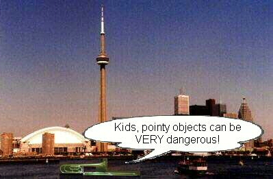 Here's the Mighty Trombone with the CN Tower in Toronto! If I were a giant who needed a toothpick, I'd be sure to visit Toronto...luckily, I'm not.