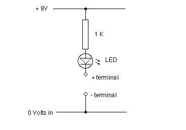 LED, and two terminals, all in series. Short out the + and - terminals, and the