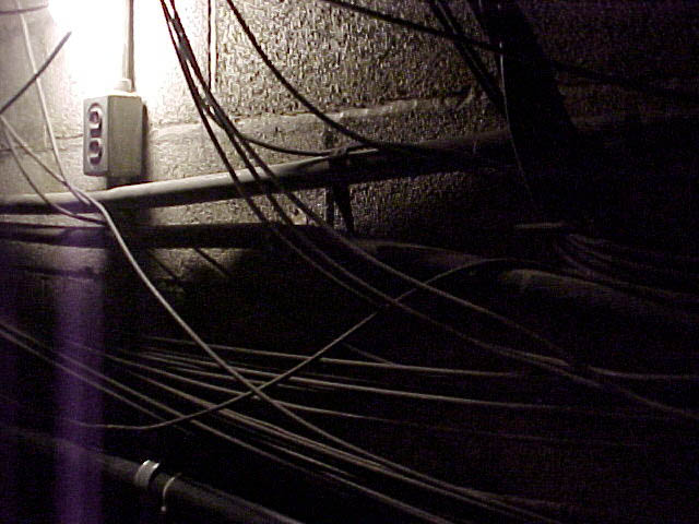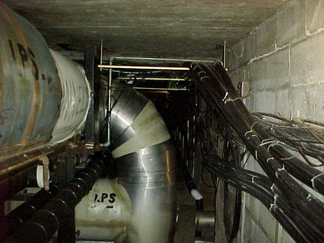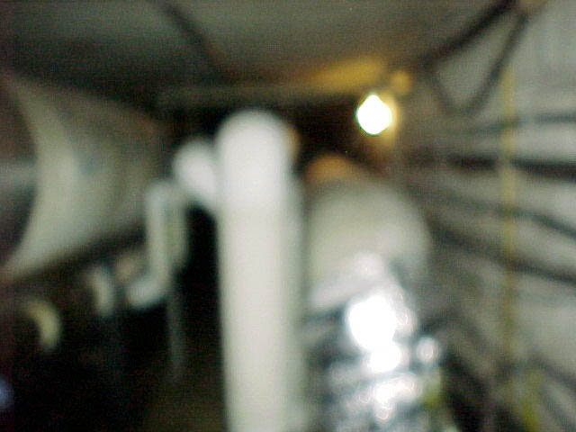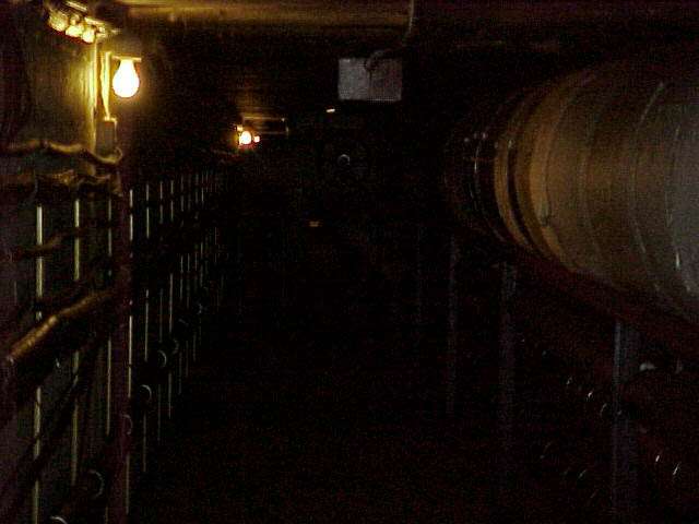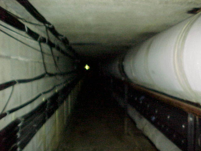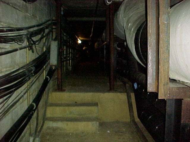 Here are some QuickTime jpegs. Starting left to right, this is a trip taken from Pamplin to Agnew's basement door, which is guarded by a gate. If you right click (or control-click for Macs) on these pictures and open them in a new window,you can look at them in full size. Definitely check out the one of the steam pipe with writing on it. Just some of the interesting graffiti you'll find down there.