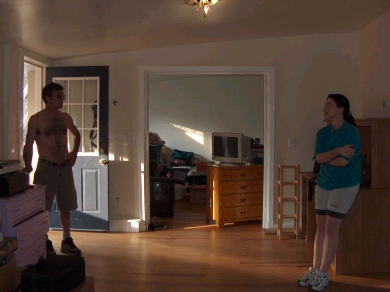May 2004 - Mark knocking me over... moving into the Londonderry Apartment.