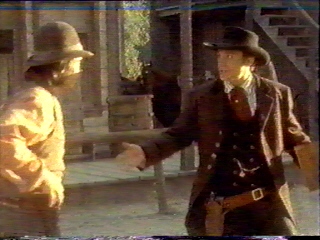 I grabbed these shots. Unfortunately, my tapes are copies of copies of copies and thus the grabs are grainy. If there's anyone out there who would like to share their very clear, PAL copies of the episodes, I'd love to hear from you. (g) Just click on the picture to see the larger version. |