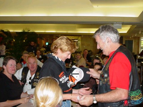 Road Captain JG trying to get the message across about how he never wins the prize!