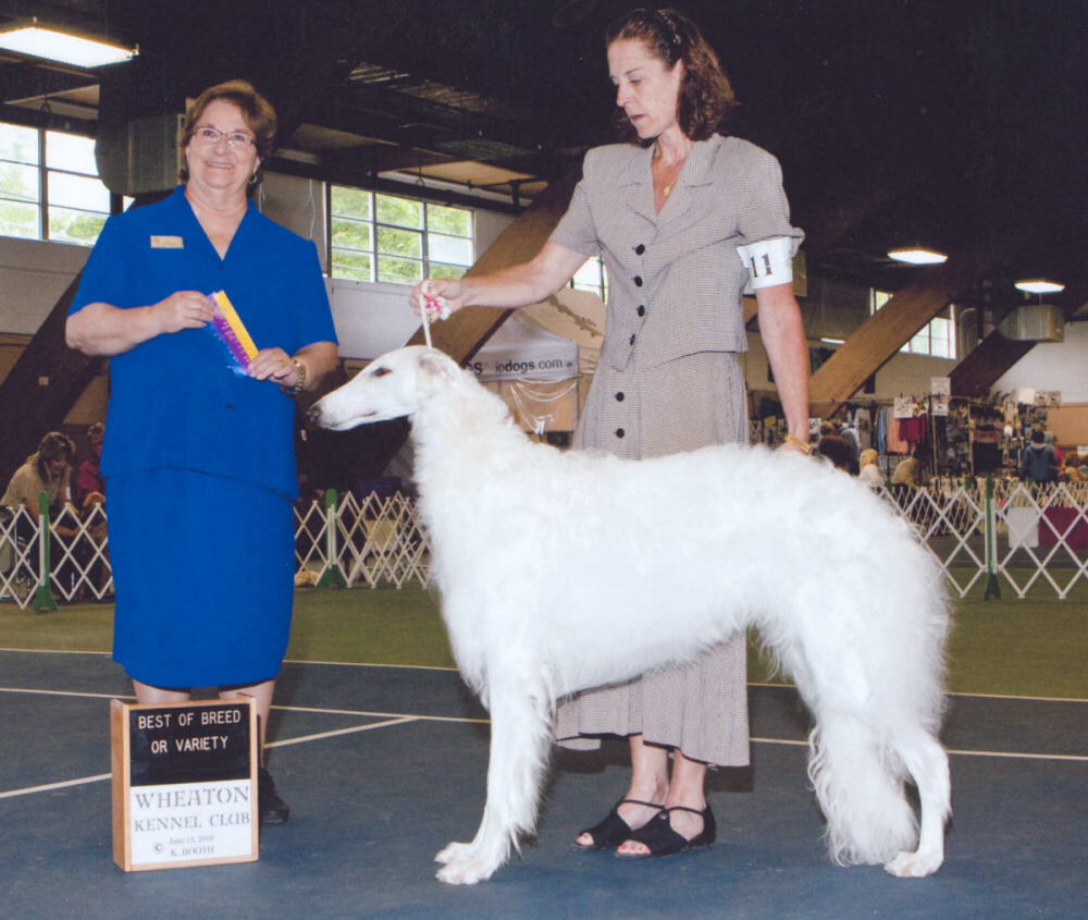 "Halo" UKC & Int'l CH Secret Garden Halo of Royal Sooner AKC & Finnish CH Secret Garden Archangel x CH Secret Garden America Owners/Handlers : Frank & Brenda Young Oklahoma Royal Sooner Great Danes & Borzoi Breeder : Mary Moran Richter