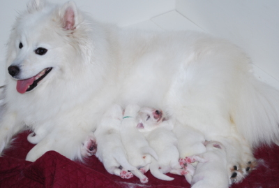 Please meet our newest litter of six, The Holly Daze Litter. Whelped on 2.8.11 Dam's name is Journey and Sire's name is Turbo. This is Journey's first litter at 3 years old. She's a wonderul mother with fantastic temperament. Same for the sire... I expect the same if not even more great temperament from these guys. Please keep coming back... we'll be adding more still photos of the litter as well as ongoing videos so you can get a chance to watch them grow.