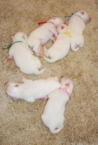 Whelped on May Day 2009 they are our fourth generation litter...and we are very excited to see how they develop. We know that they will have same tremendously sweet temperament as their sire and dam both have!