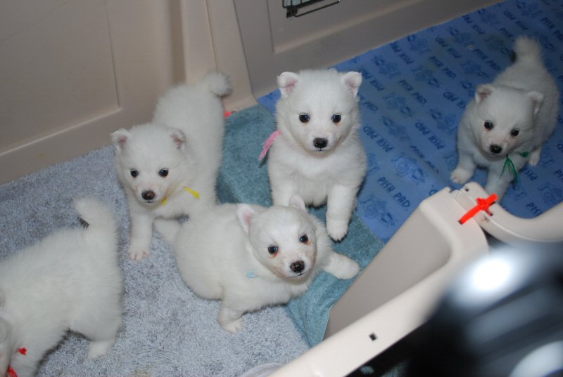 Please say hello to the newest additions to our Angelheart-Eskies family. Whelped on May Day 2009 they are our fourth generation litter...and we are very excited to see how they develop. We know that they will have same tremendously sweet temperament as their sire and dam both have!