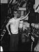 Auxiliaryman in #2 Fireroom standing Forced Draft Blower Watch.