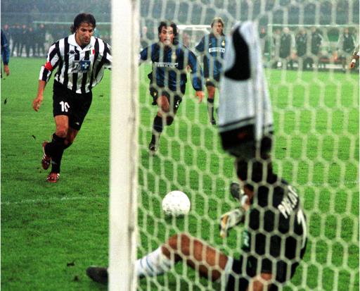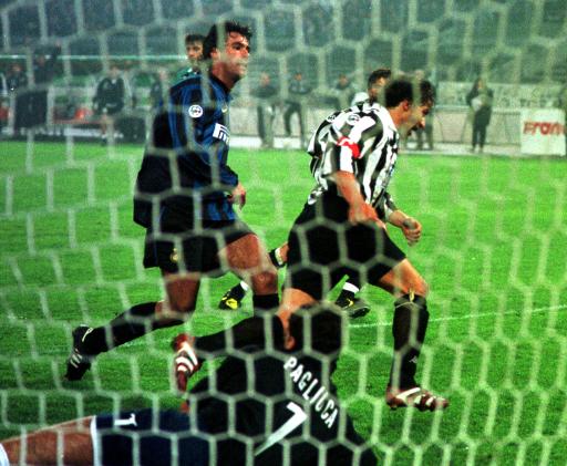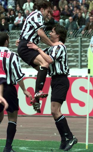 Del Piero and Inzaghi celebrate Inzaghi's goal during Sundays game against
