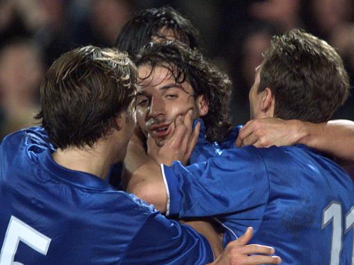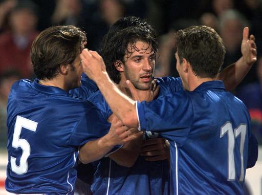 Del Piero playing for italy against Switzerland in the Euro200 qualifier