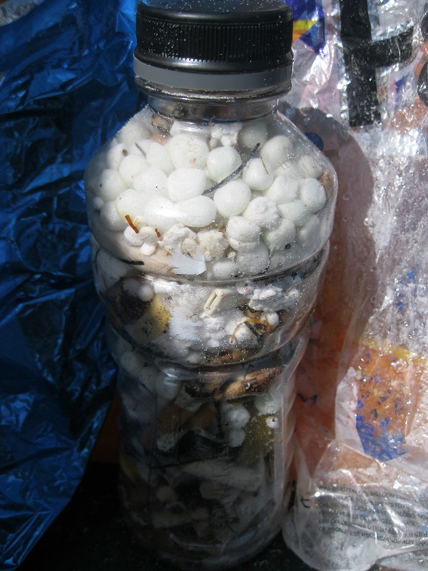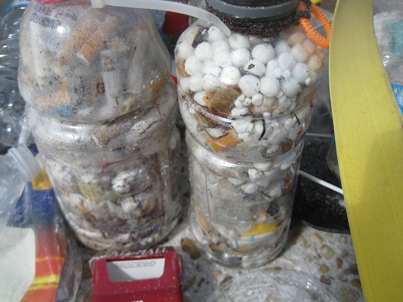 CIG BUTTS AND STYROFORM PIECES AND BALLS
