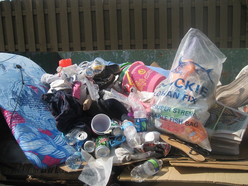 FILLED IT WITH TRASH PLASTIC BOTTLES, BEER CANS AND GLASS BEER BOTTLES