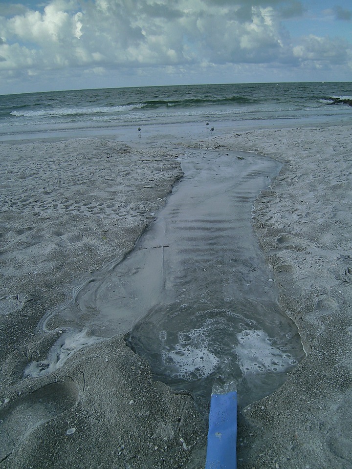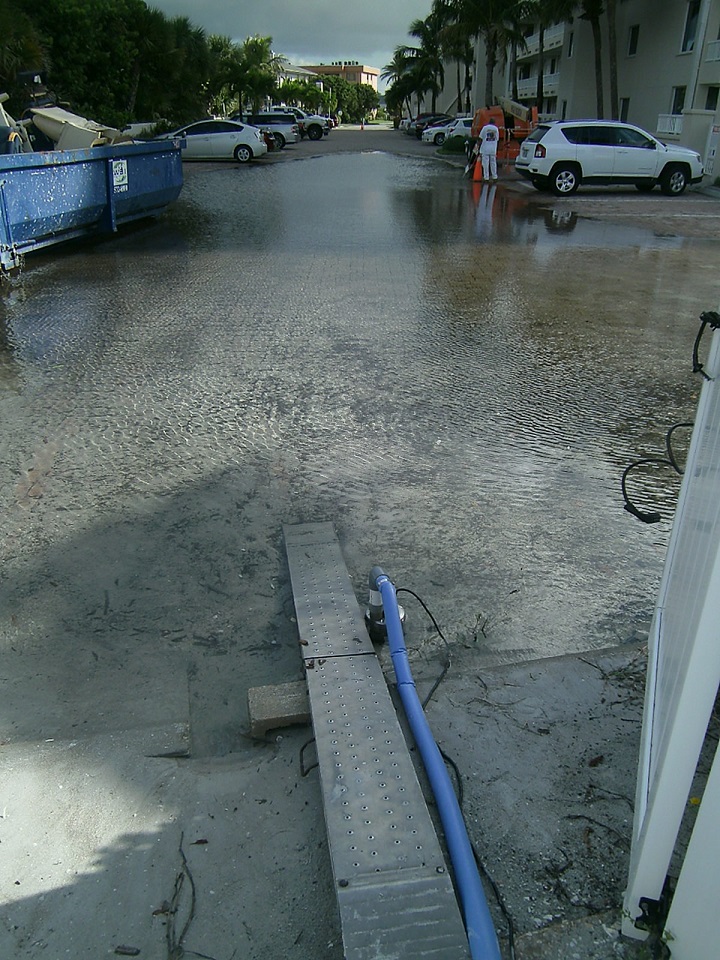 PUMPING RAIN WATER INTO OCEAN FROM FLOODED PARKING LOT