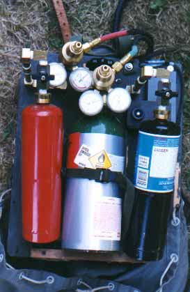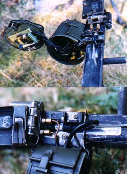 SQUAD MACHINEGUNS MG 34: ![]() MG34 "Gas Gun" As Washington is not a Class III state none of our individual members own full automatic weapons. However, our unit Weapons Specialist has made a one man portable MG34 "GAS GUN" for the squad machine gun. This is built on a BATF approved nongun and can not fire live ammo or blanks, but produces realistic sound and flash by the electronic igniton of a propane/oxygen mixture in a small combustion chamber. This walk-and-shoot unit weighs 25 lbs. with all electronics built into the drum. The backpack weighs 18 lbs. and contains the propane and oxygen tanks and a 12 volt gel cell battery. We form the squad around this, and it makes us a formidable unit in the field.