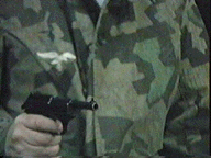 ![]() Click on this to see a video of the above Best if viewed with Windows Media Player 6.4 or higher. DOWNLOAD MEDIA PLAYER NETSCAPE PLUG IN True to form, our unit makes good use of our pistols, they are especially handy in thick woods and the confines of our town battles. Their eight shot magazines and semi-auto fire often puts us on par with the G.I. Garand during close fighting. We almost exclusively use blank adapted P38s (depicted above) or the less expensive P38 non-guns.