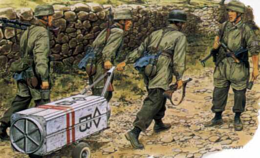 ![]() K98 & G33/40 The 98k bayonet with frog are mandatory with either of these weapons. A basic load of 100 rounds of ammo is carried in the unique (and preferred) fallschirmjaeger bandoleer, or 30 rounds each in the also acceptable 3 cell ammo pouches. ![]() G43 The unit has also produced excellent soft rubber copies of both the Stielhandgranate 24 (potato masher) and Eihandgranate 39 (egg grenade). |