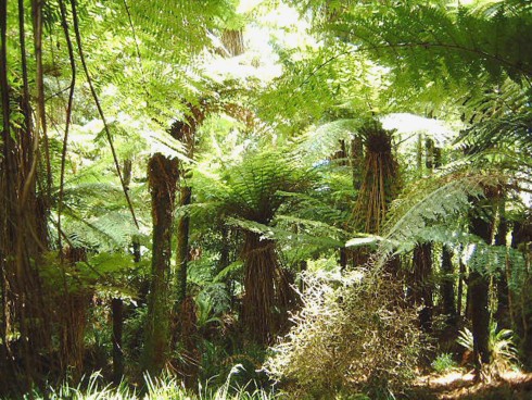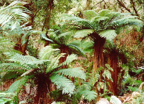 Crowns and skirts of Cyathea smithii. Photo courtesy of Peter Richardson.