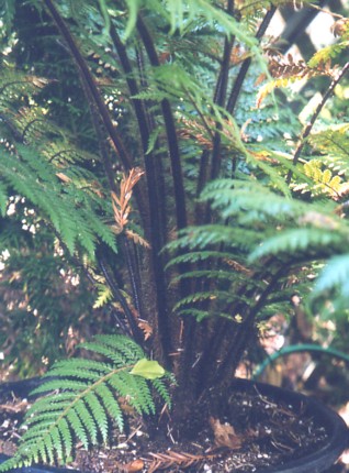 Dicksonia squarrosa in my garden in Olympia, Washington. Not all of the fronds made it through the exceptionally hot summer of 1998. Photo by the author.