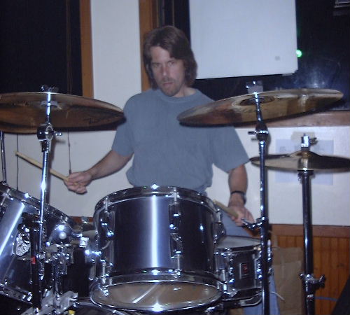 Mark is a multitalented musician, schooled at Cornish School of Fine Arts. A guitar teacher by trade and a natural recording engineer. All refinement is lost when he gets behind a drum set. Fueled by caffine and suger his alter ego emerges.