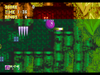 However, if you do get trapped in the hole (act 1) shown bellow using Knuckles (Knuckles jump lower), the sollution is simple.